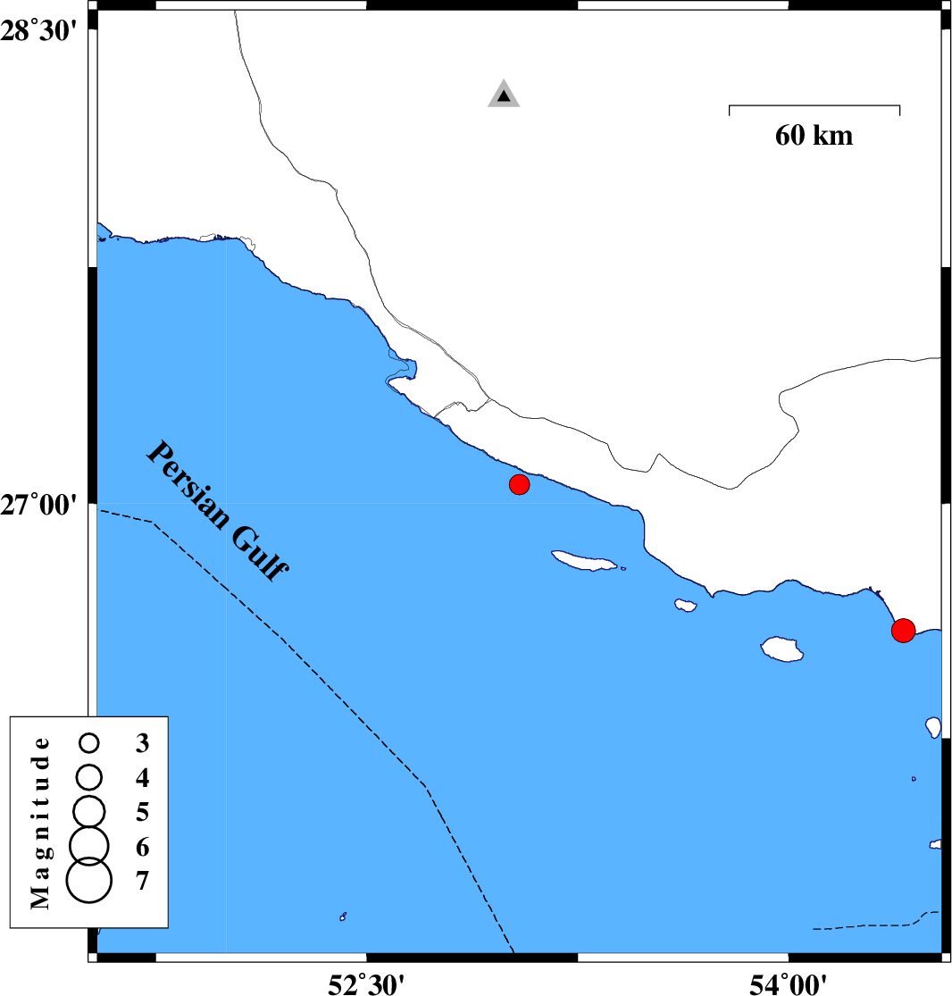 | 2023/09/27 | 10:58:54.8 | 14:28:54.8 | 27.061 | 53.042 | 9 | ML3.3 | Persian Gulf, 33 km South-West of Lamerd | ||