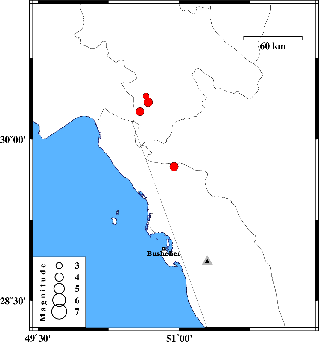 | 2023/09/28 | 08:52:36.7 | 12:22:36.7 | 29.747 | 50.945 | 12 | ML4.1 | Bushehr Province, 46 km North-East of Bandar-e genaveh | ||