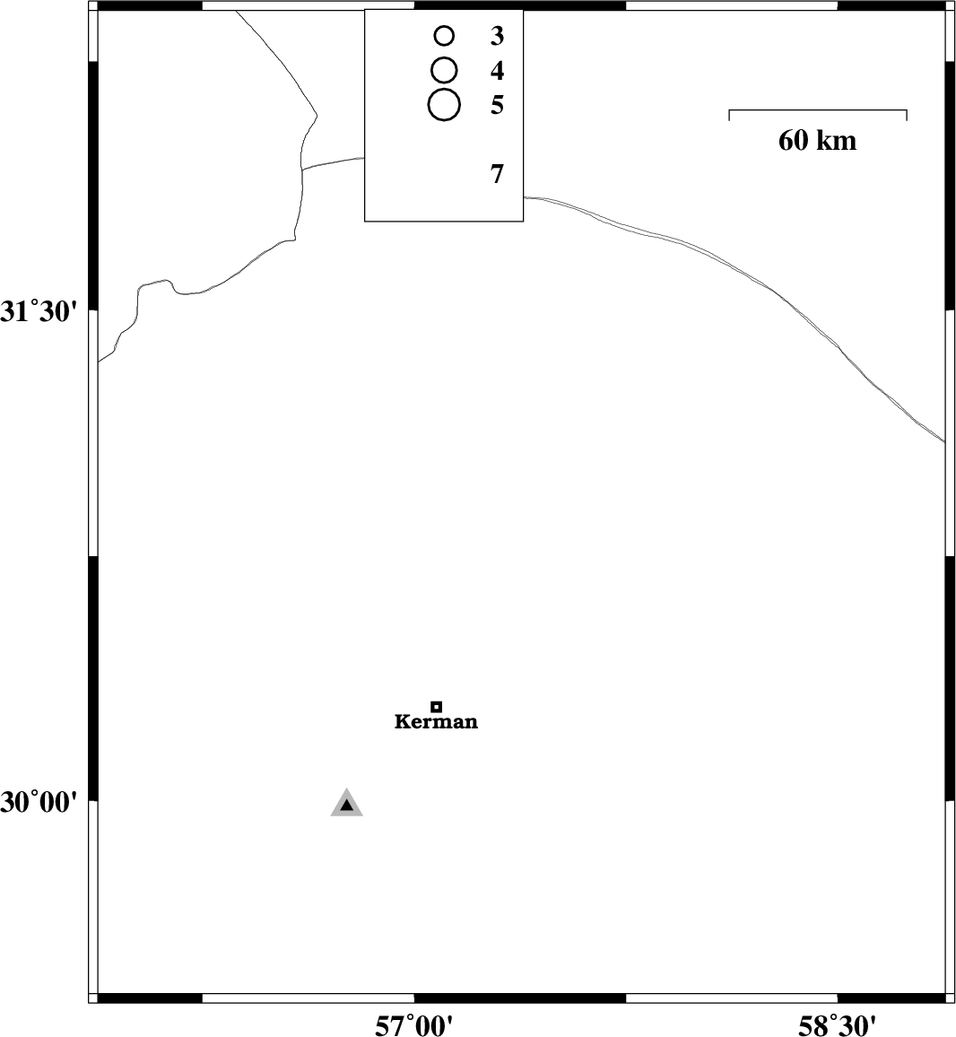 | 2023/08/30 | 02:44:37.8 | 06:14:37.8 | 30.777 | 56.534 | 7 | ML3 | Kerman Province, 5 km of Zarand |