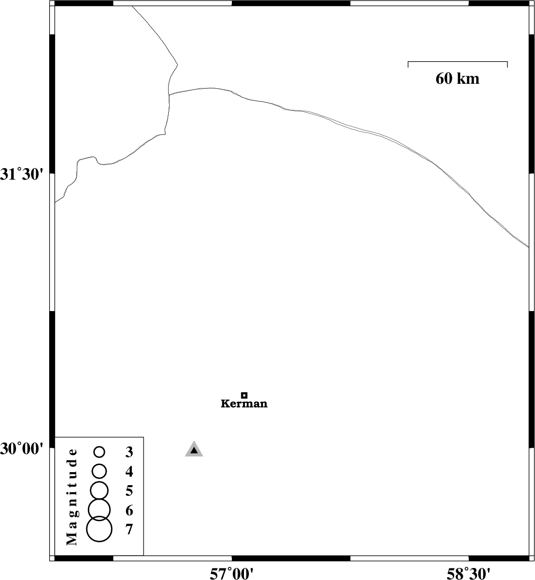 | 2023/09/29 | 01:39:12.4 | 05:09:12.4 | 30.904 | 57.38 | 12 | ML3 | Kerman Province, 78 km -East of Zarand |