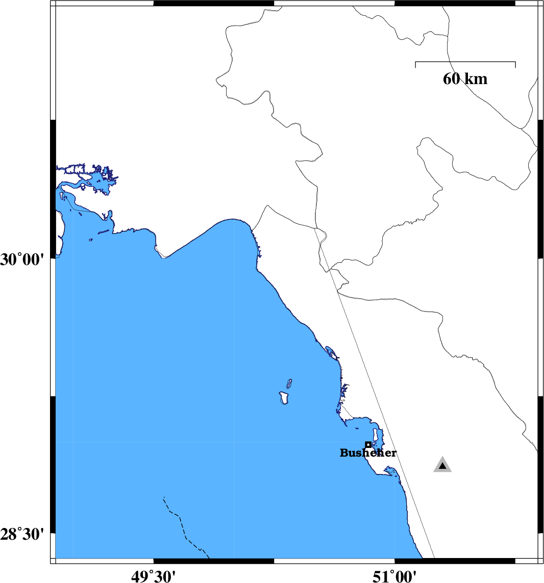 | 2023/09/28 | 08:52:36.7 | 12:22:36.7 | 29.747 | 50.945 | 12 | ML4.1 | Bushehr Province, 46 km North-East of Bandar-e genaveh |