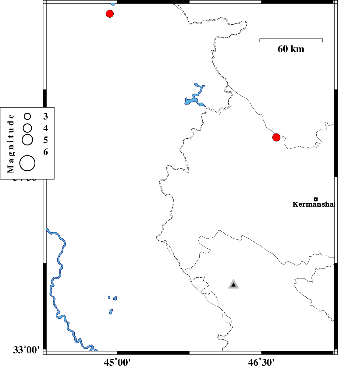 | 2023/10/03 | 05:57:29.5 | 09:27:29.5 | 34.542 | 45.9 | 12 | ML3.9 | Kermanshah Province, 9 km of Sar-e pol-e zahab | ||