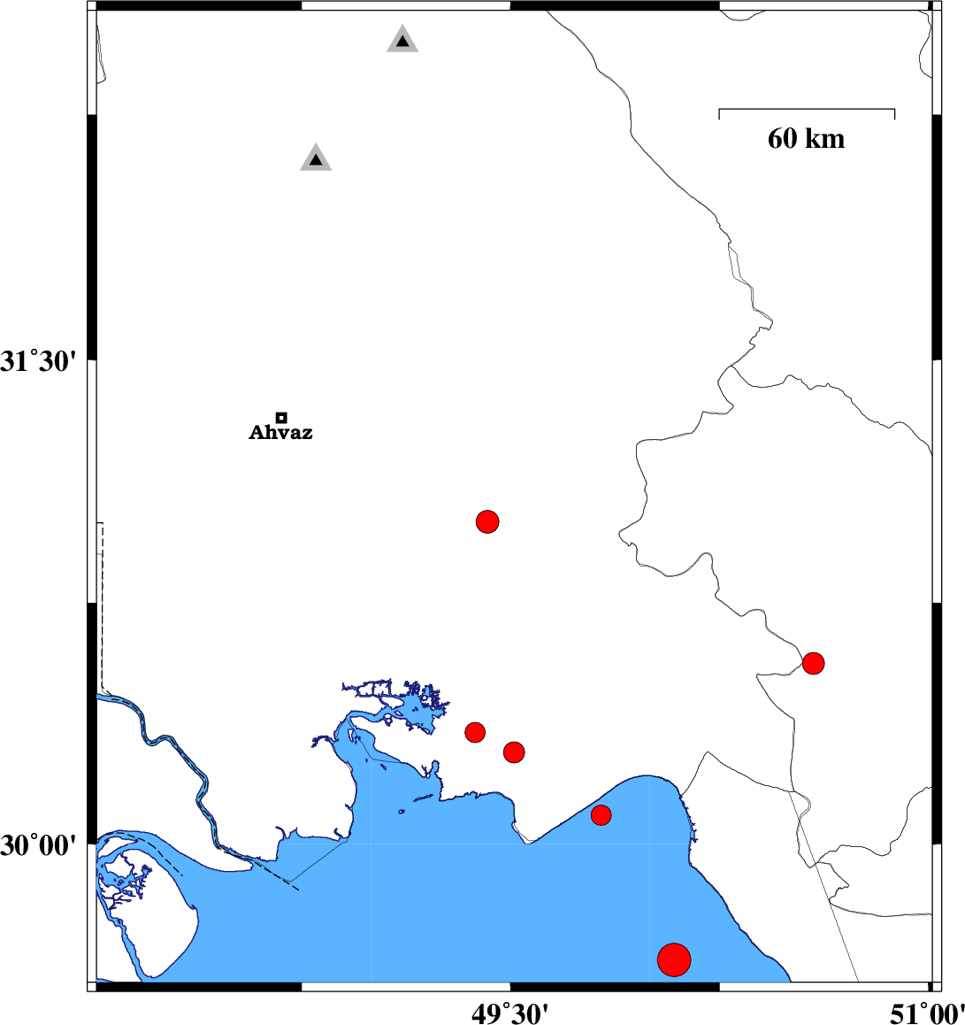Khoozestan Province, 34 km North-West of Bandar-e genaveh | |
