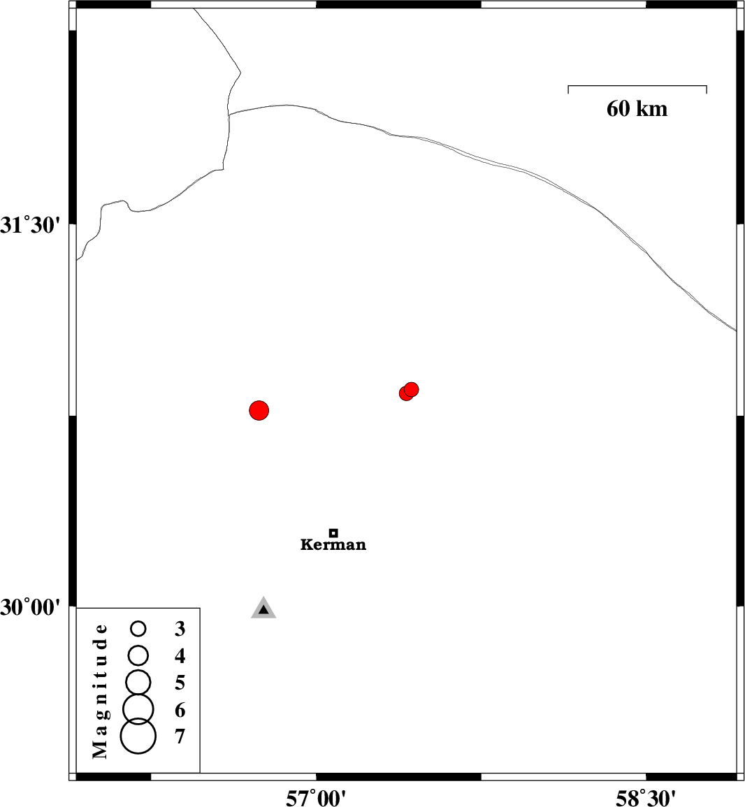 | 2023/10/16 | 02:08:25.4 | 05:38:25.4 | 30.837 | 57.41 | 12 | ML3 | Kerman Province, 80 km -East of Zarand | ||