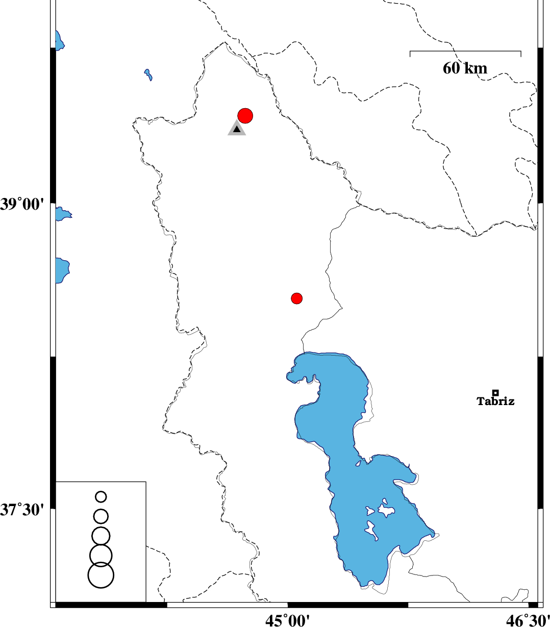 | 2023/11/13 | 14:58:05.9 | 18:28:05.9 | 39.423 | 44.736 | 10 | ML4.3 | Azarbaijan Gharbi Province, 25 km North-East of Maku |