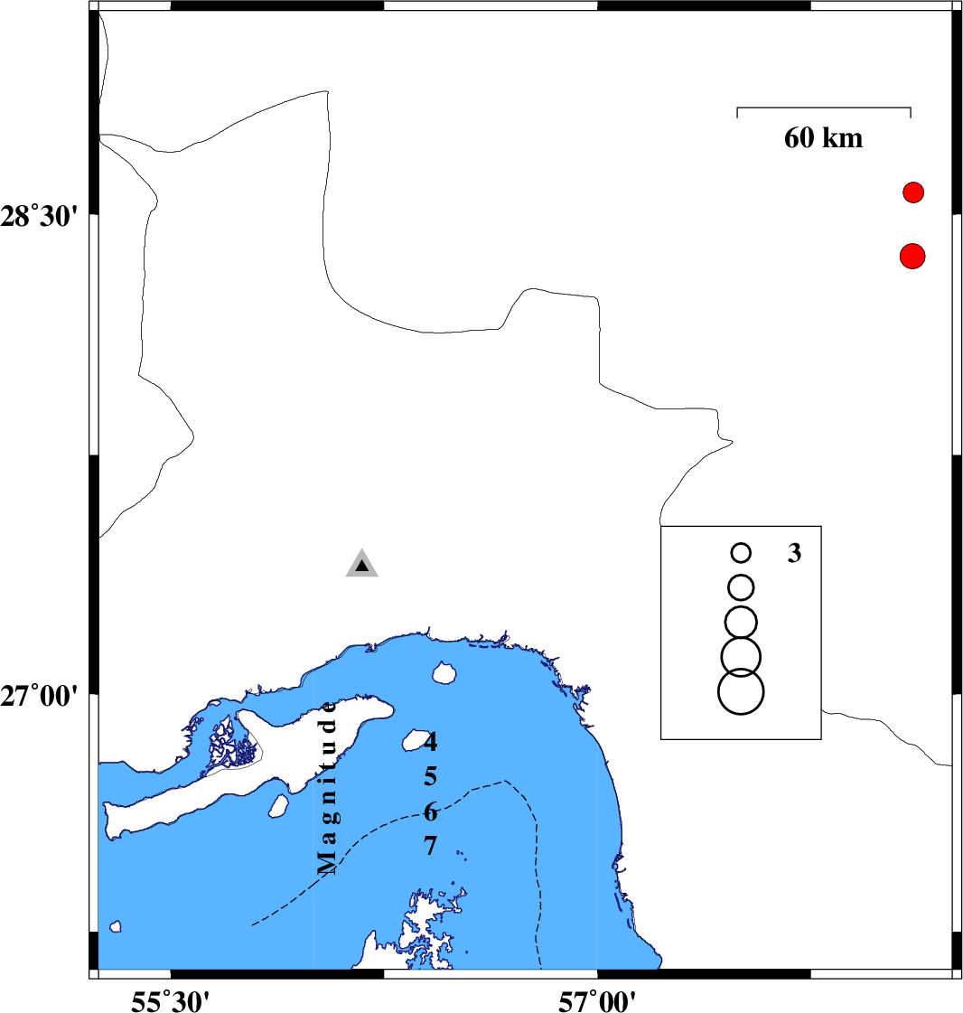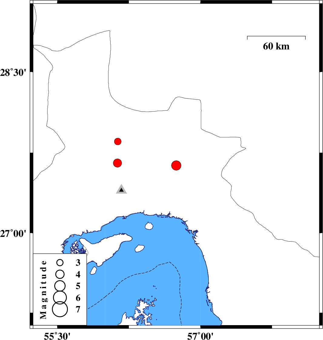 | 2023/11/13 | 05:50:08.2 | 09:20:08.2 | 27.654 | 56.13 | 12 | ML3.9 | Hormozgan Province, 54 km North-West of Bandar-e abbas |