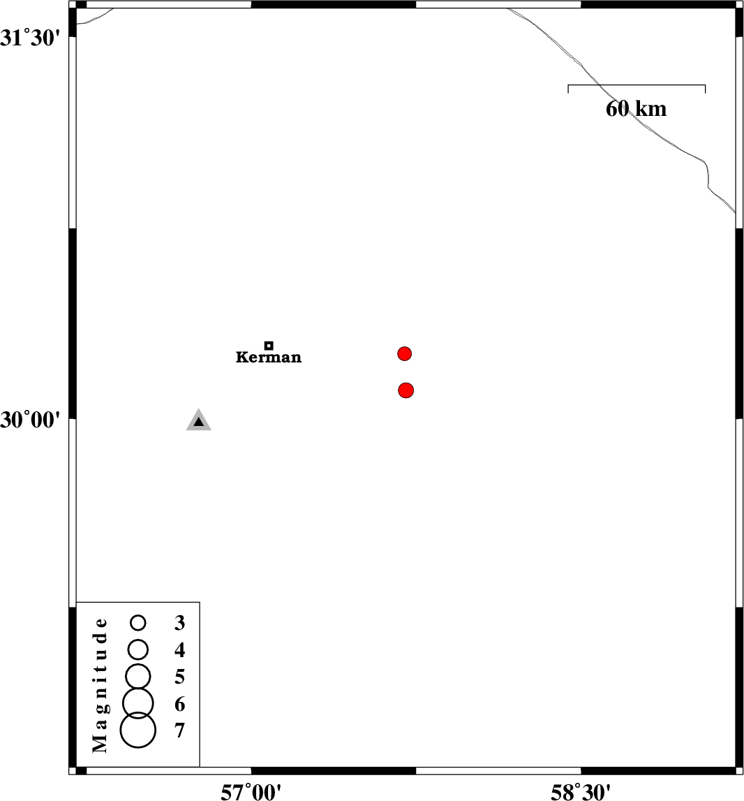 | 2021/03/23 | 05:18:25.8 | 09:48:25.8 | 30.111 | 57.703 | 12 | ML3.1 | Kerman Province, 63 km South-East of Kerman | ||