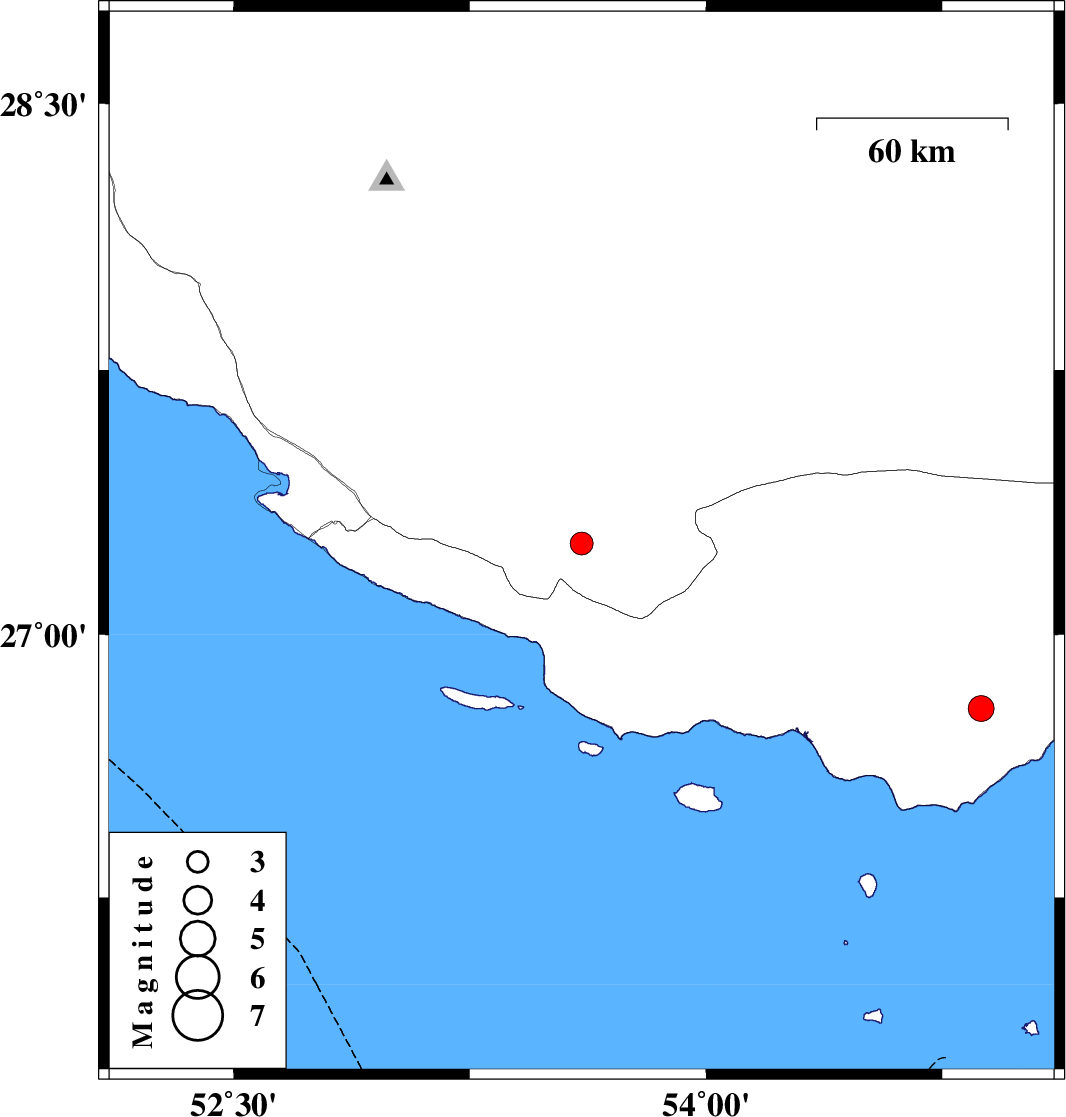 | 2023/12/07 | 09:56:25.8 | 13:26:25.8 | 26.789 | 54.873 | 12 | ML3.6 | Hormozgan Province, 29 km North of Bandar-e lengeh |