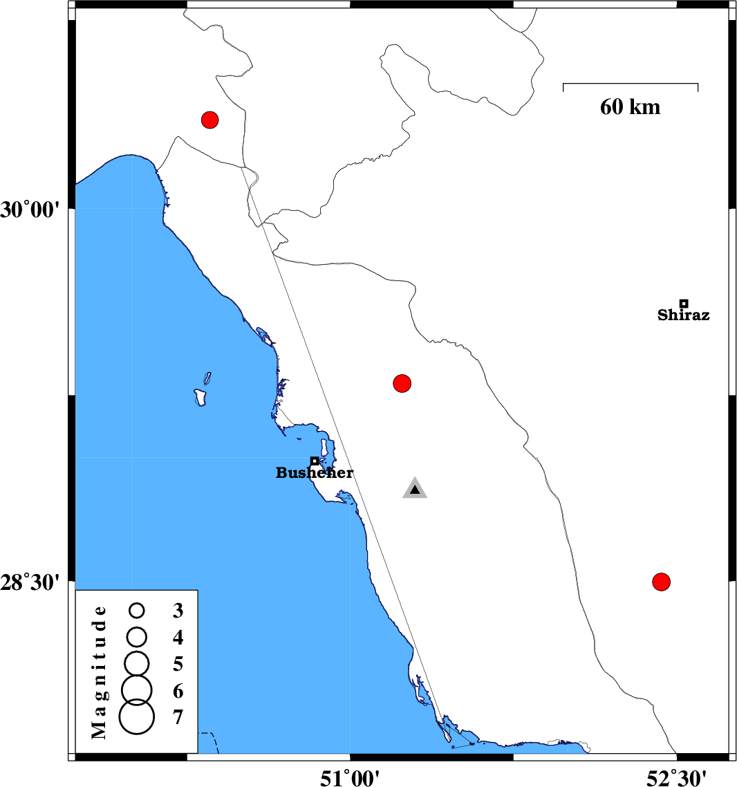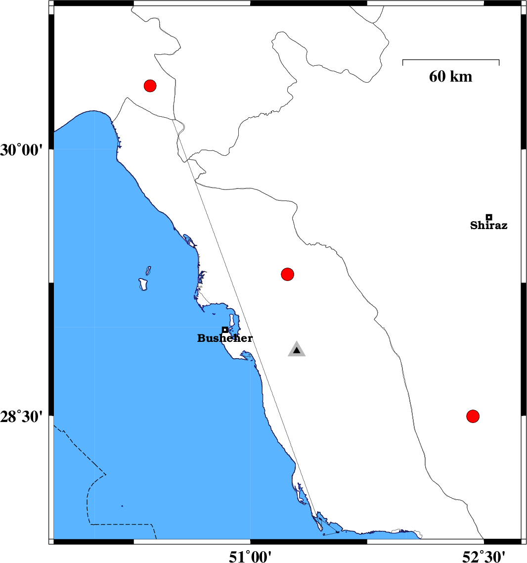 | 2023/12/16 | 15:09:51.0 | 18:39:51.0 | 29.298 | 51.238 | 17 | ML3.6 | Bushehr Province, 5 km of Borazjan | ||