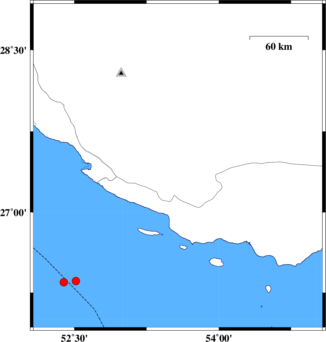 | 2023/12/21 | 08:20:52.9 | 11:50:52.9 | 27.426 | 53.575 | 16 | ML4 | Fars Province, 42 km -East of Lamerd | ||