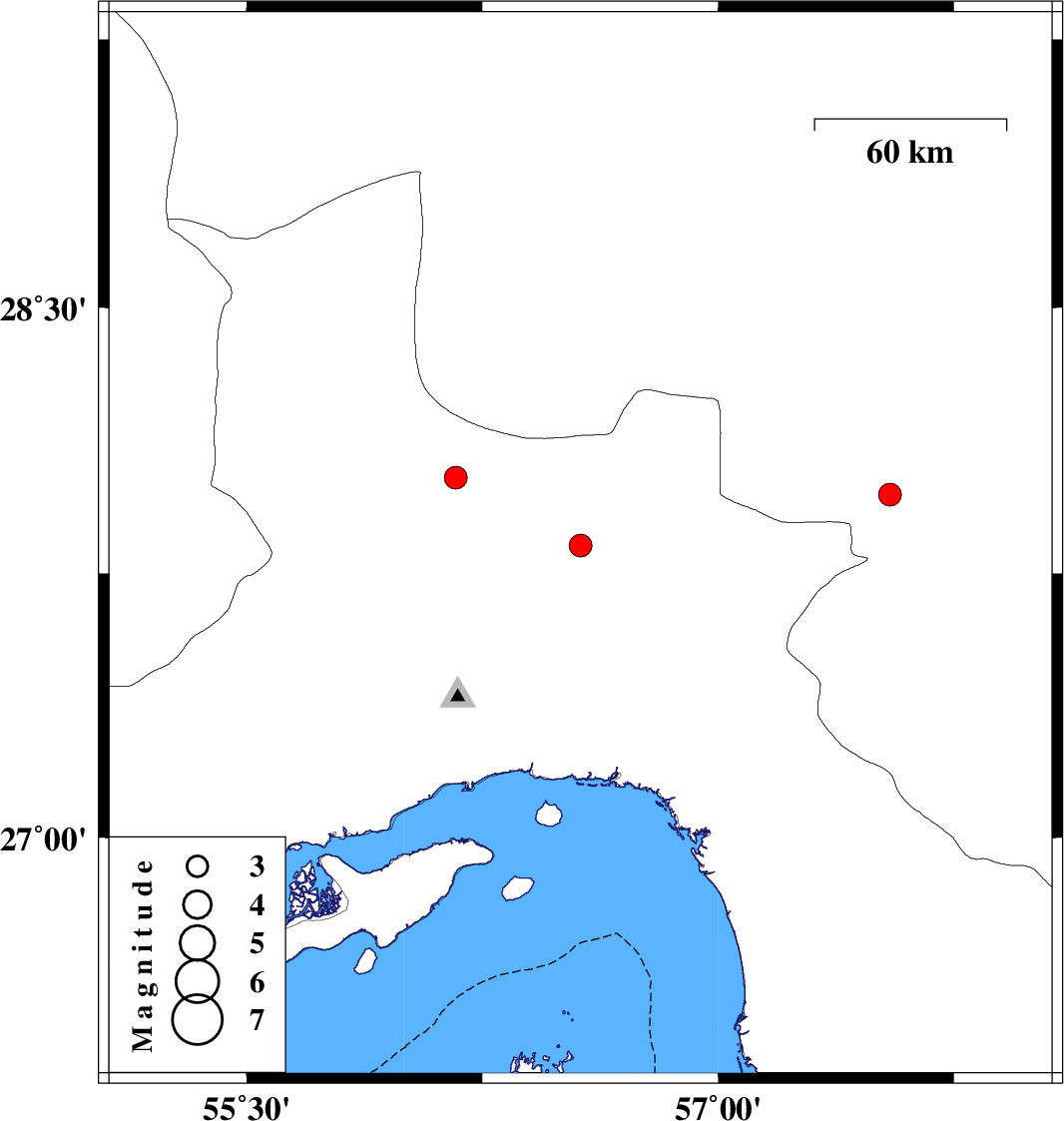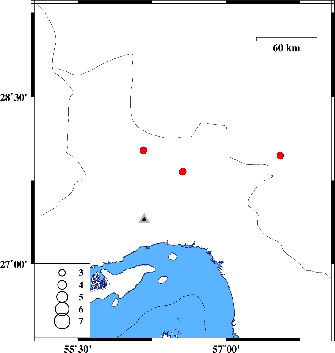 | 2023/12/23 | 16:01:42.7 | 19:31:42.7 | 27.973 | 57.547 | 12 | ML3.2 | Kerman Province, 15 km -West of Kahnuj | ||