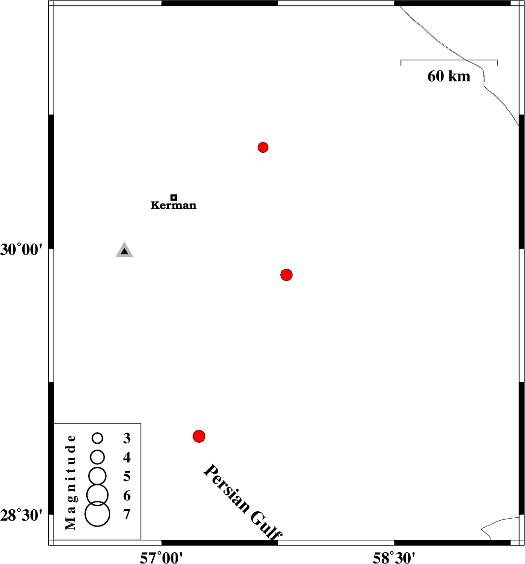 | 2023/12/30 | 17:45:59.2 | 21:15:59.2 | 29.854 | 57.805 | 12 | ML3.4 | Kerman Province, 85 km South-East of Kerman | ||