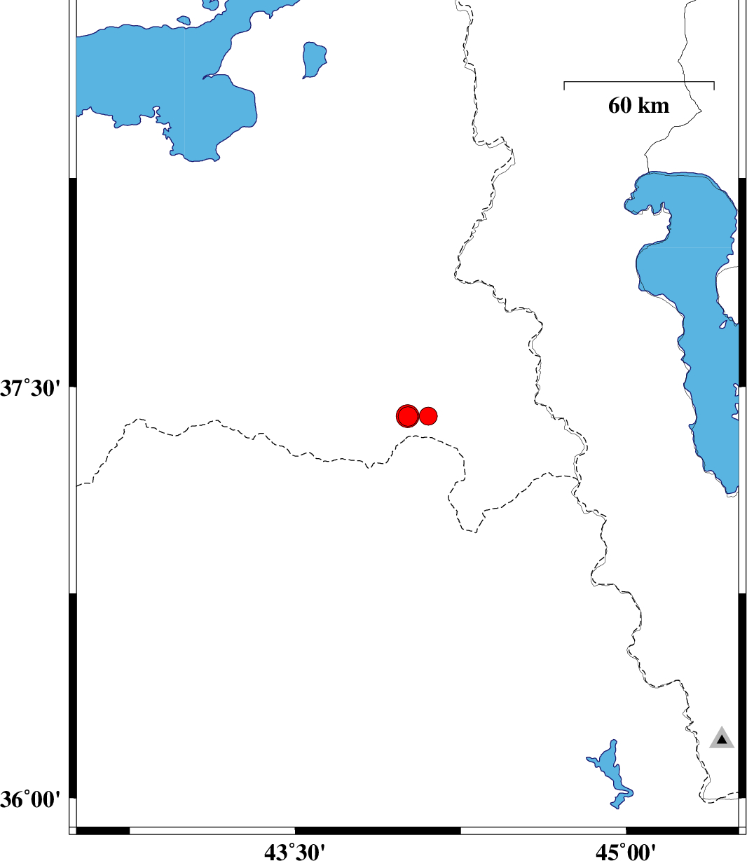 | 2023/12/31 | 16:53:02.6 | 20:23:02.6 | 37.393 | 44.103 | 12 | ML3.7 | Turkey, 87 km South-West of Orumiyeh |
