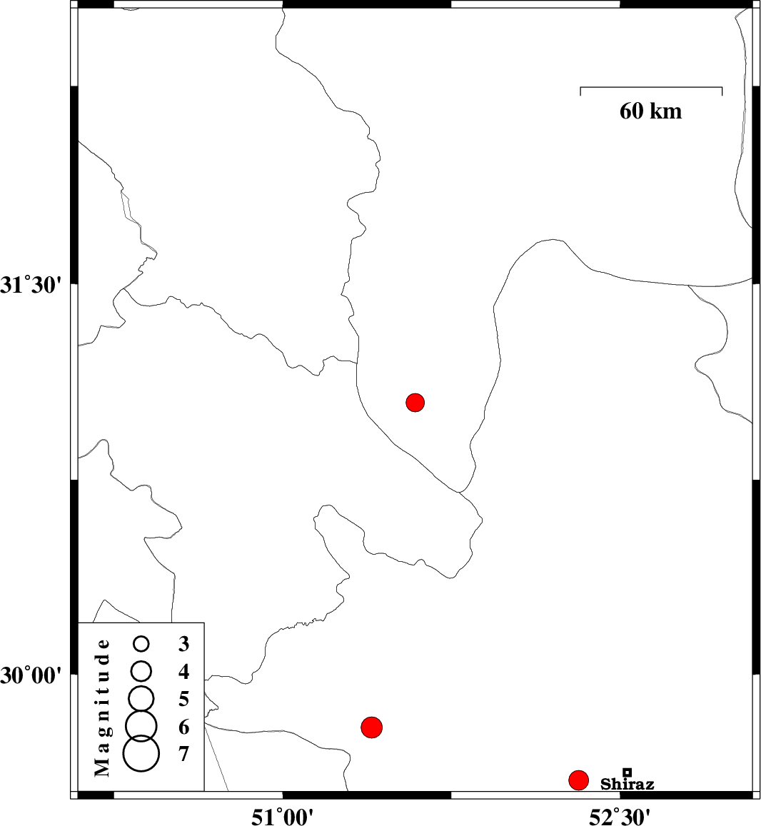 | 2024/01/04 | 03:46:09.7 | 07:16:09.7 | 31.046 | 51.589 | 12 | ML3.6 | Esfahan Province, 24 km North-East of Sisakht | ||