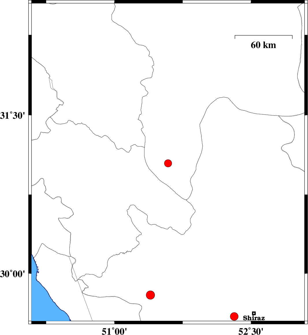 | 2023/12/18 | 12:17:28.7 | 15:47:28.7 | 29.589 | 52.316 | 10 | ML3.9 | Fars Province, 21 km -West of Shiraz |