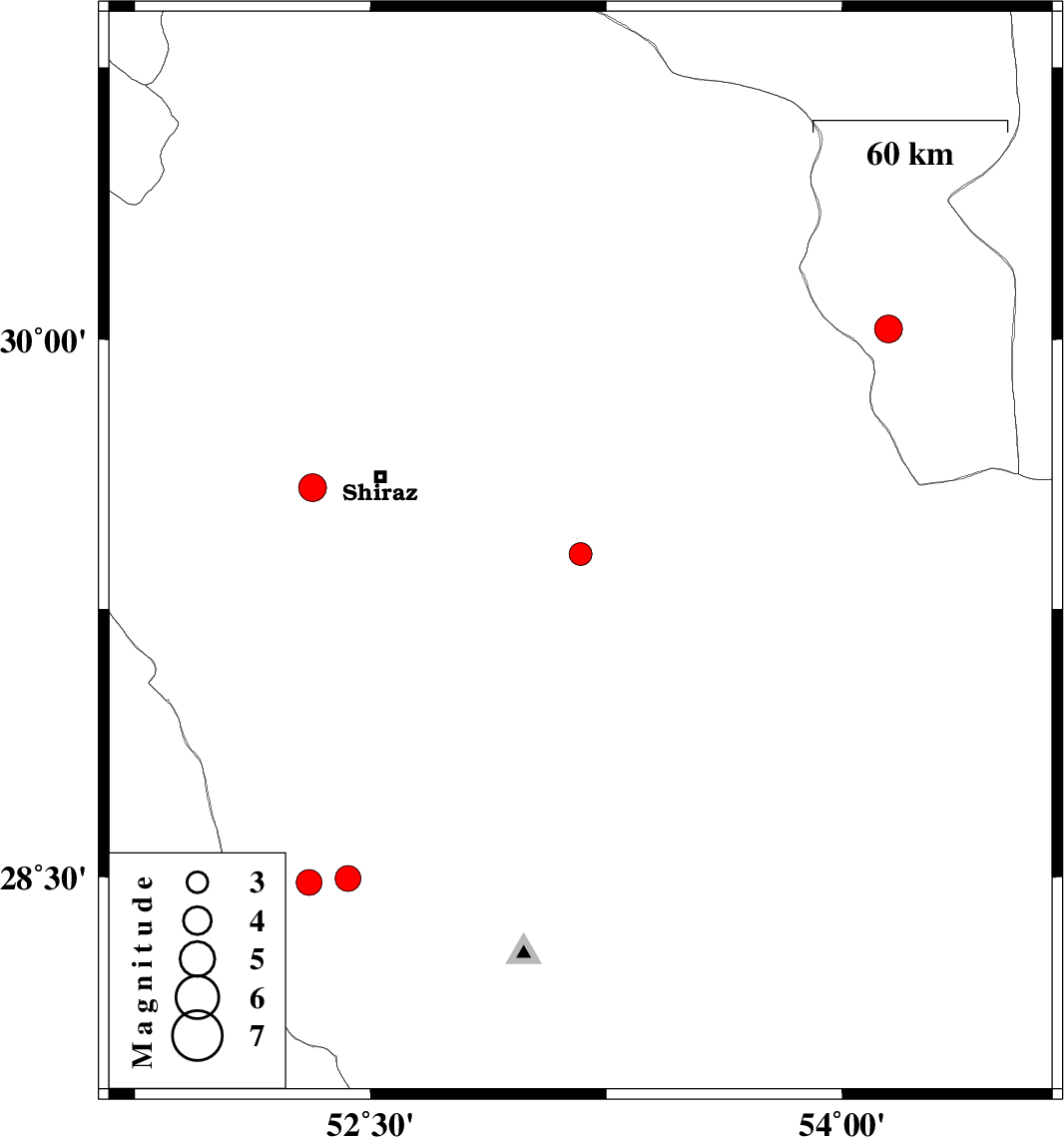 | 2023/12/18 | 12:17:28.7 | 15:47:28.7 | 29.589 | 52.316 | 10 | ML3.9 | Fars Province, 21 km -West of Shiraz | ||