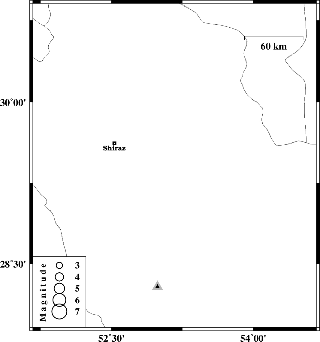 | 2024/01/04 | 17:11:06.3 | 20:41:06.3 | 29.404 | 53.168 | 10 | ML3.2 | Fars Province, 57 km South-West of Arsanjan |