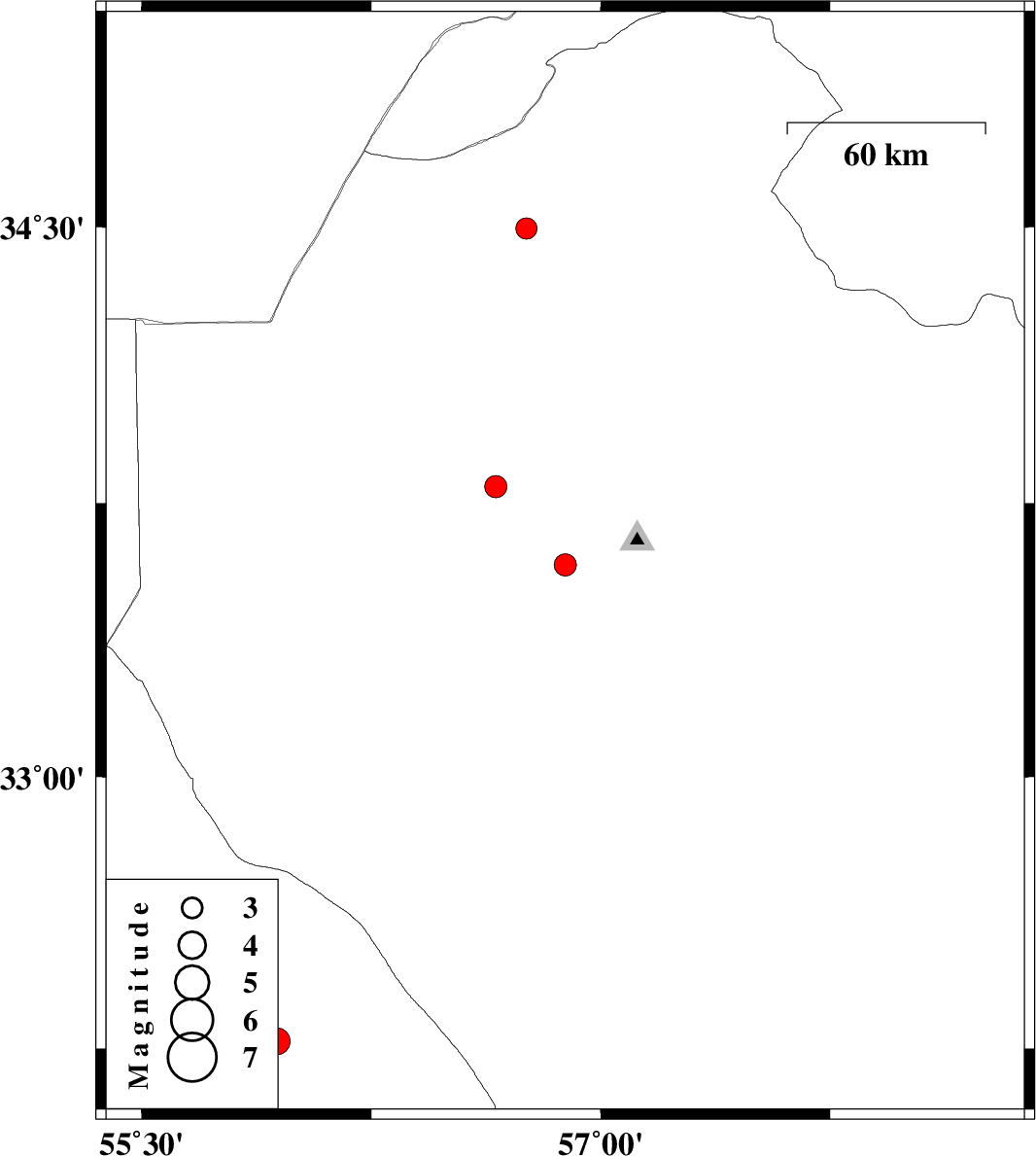 | 2024/01/08 | 04:02:25.5 | 07:32:25.5 | 33.582 | 56.884 | 10 | ML3.2 | Yazd Province, 4 km of Tabas | ||