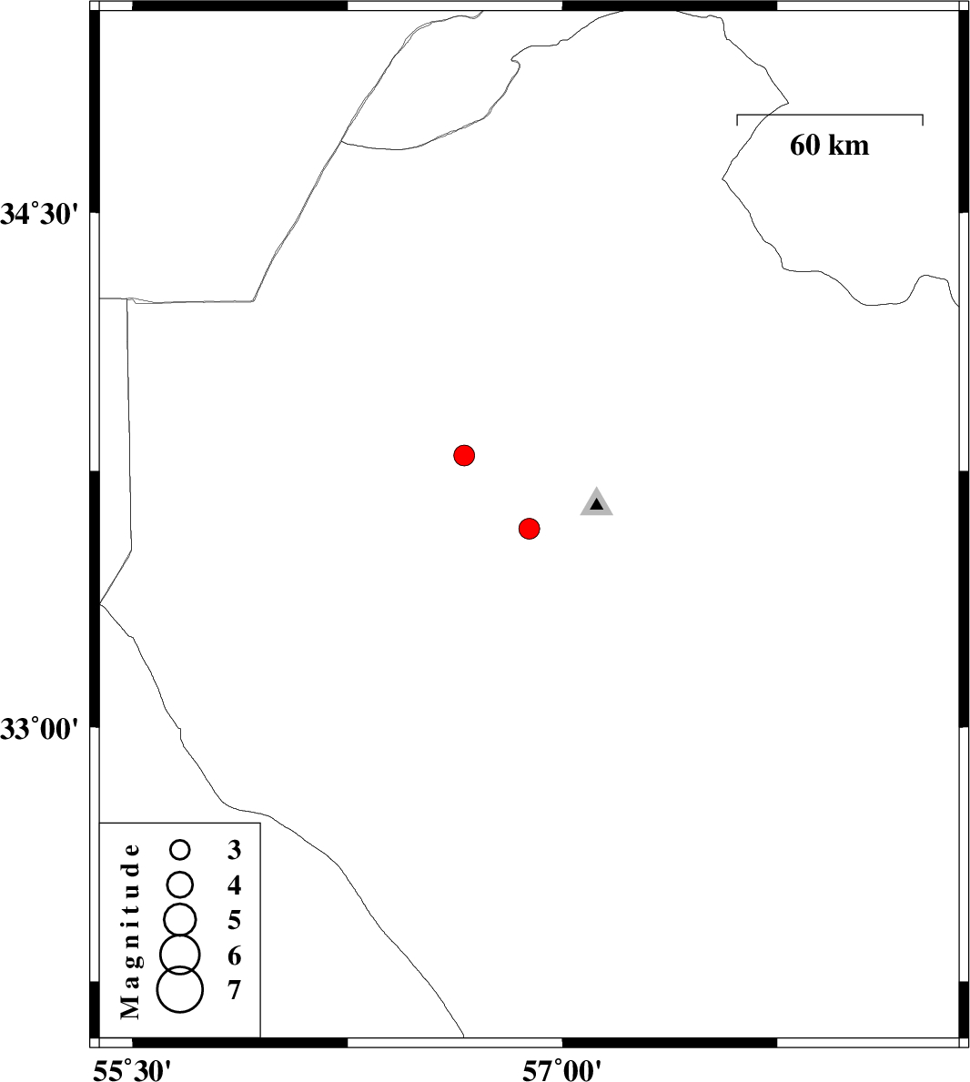 | 2024/01/08 | 19:33:40.8 | 23:03:40.8 | 32.566 | 55.778 | 12 | ML4.4 | Yazd Province, 113 km North-East of Bafq | ||