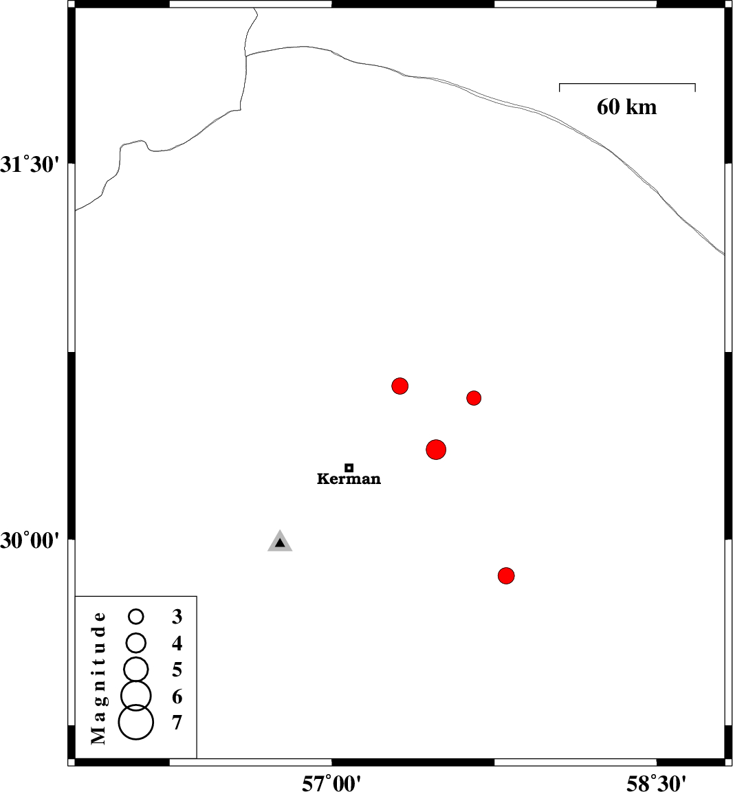 | 2023/12/30 | 17:45:59.2 | 21:15:59.2 | 29.854 | 57.805 | 12 | ML3.4 | Kerman Province, 85 km South-East of Kerman | ||