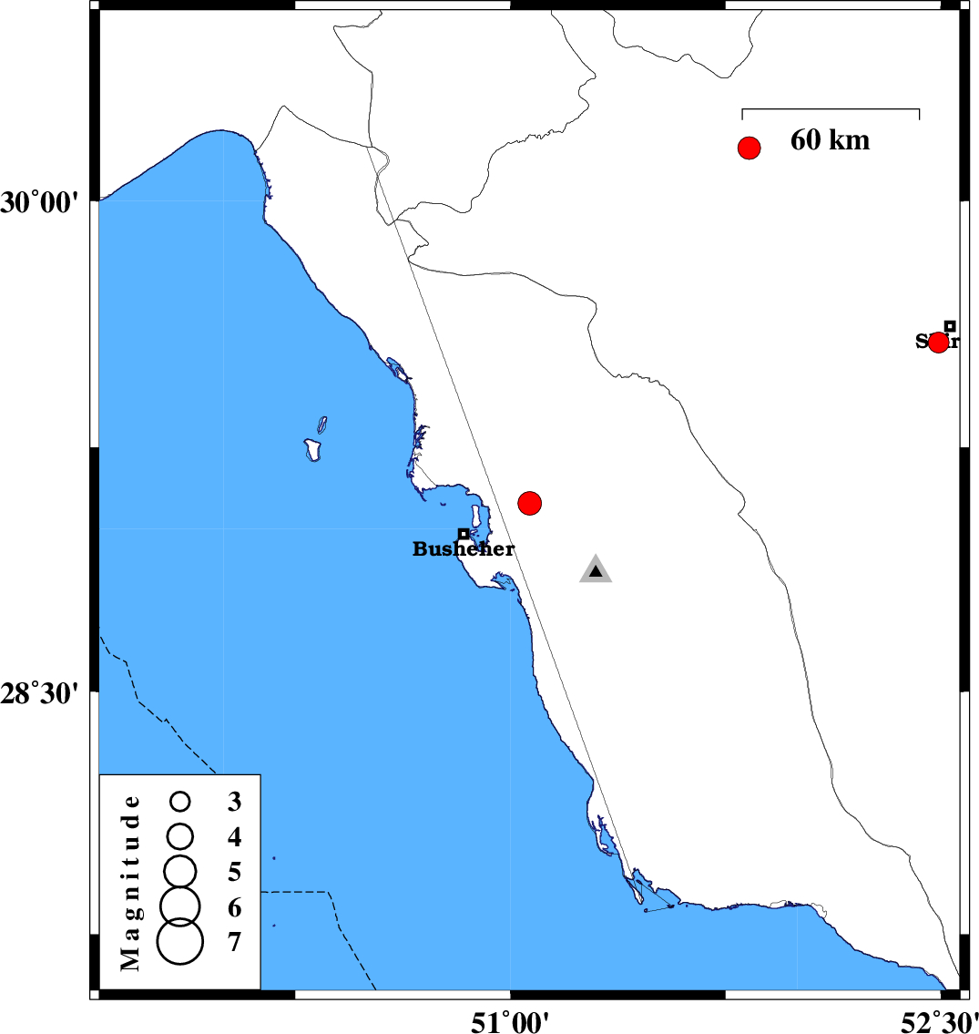 | 2024/02/07 | 01:25:31.8 | 04:55:31.8 | 29.078 | 51.067 | 16 | ML3.6 | Bushehr Province, 25 km South-West of Borazjan | ||