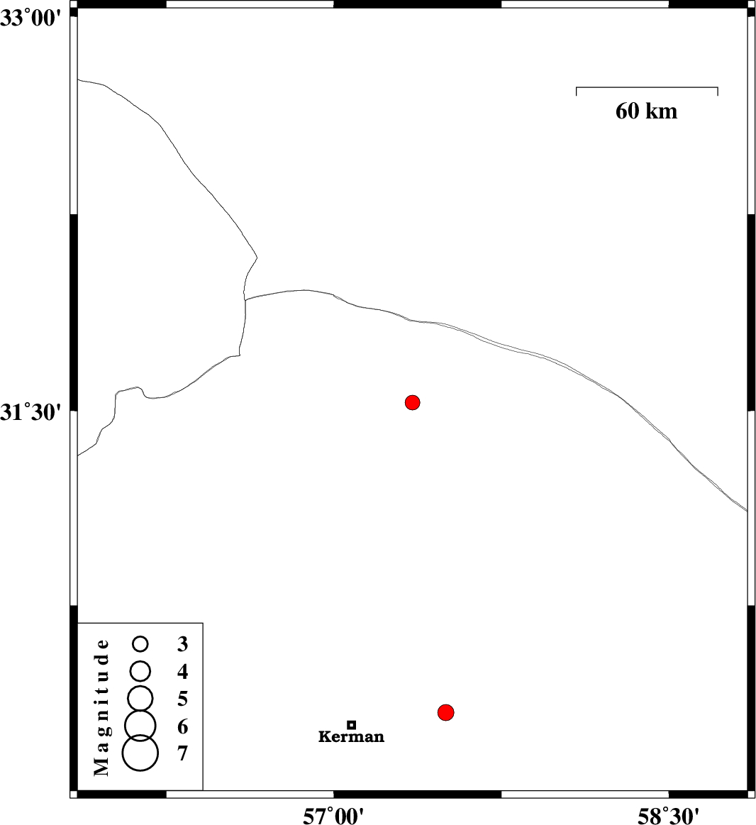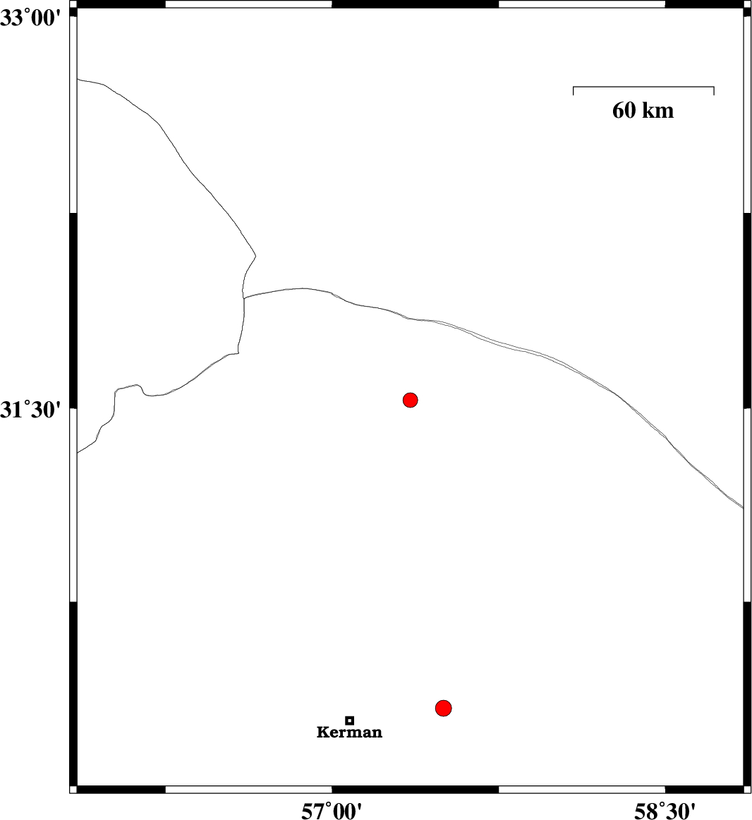 | 2024/02/09 | 14:56:33.2 | 18:26:33.2 | 30.336 | 57.502 | 7 | ML3.2 | Kerman Province, 41 km -East of Kerman |