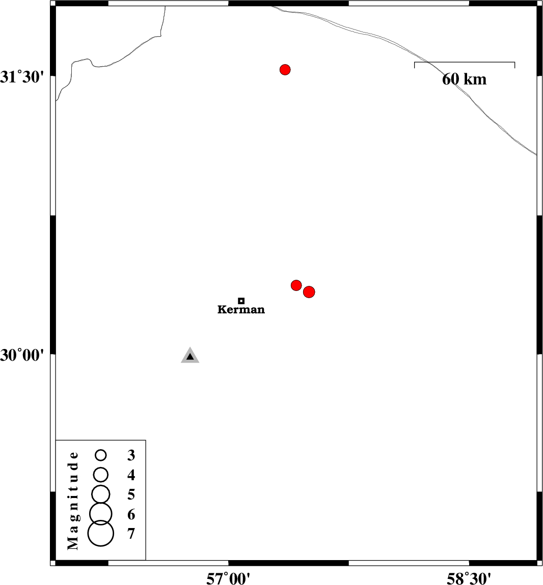 | 2024/02/09 | 14:56:33.2 | 18:26:33.2 | 30.336 | 57.502 | 7 | ML3.2 | Kerman Province, 41 km -East of Kerman |