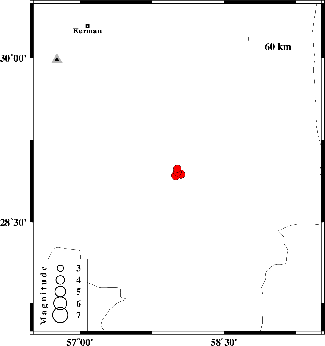 | 2024/03/09 | 02:16:01.9 | 05:46:01.9 | 28.959 | 58.016 | 12 | ML3.8 | Kerman Province, 37 km South-West of Bam | ||