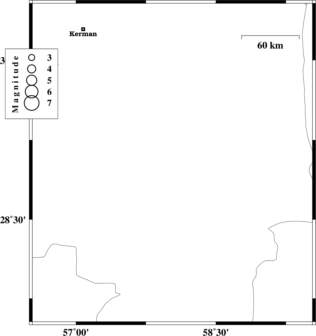 | 2024/03/07 | 17:27:03.9 | 20:57:03.9 | 28.939 | 58.05 | 8 | ML3.9 | Kerman Province, 35 km South-West of Bam |