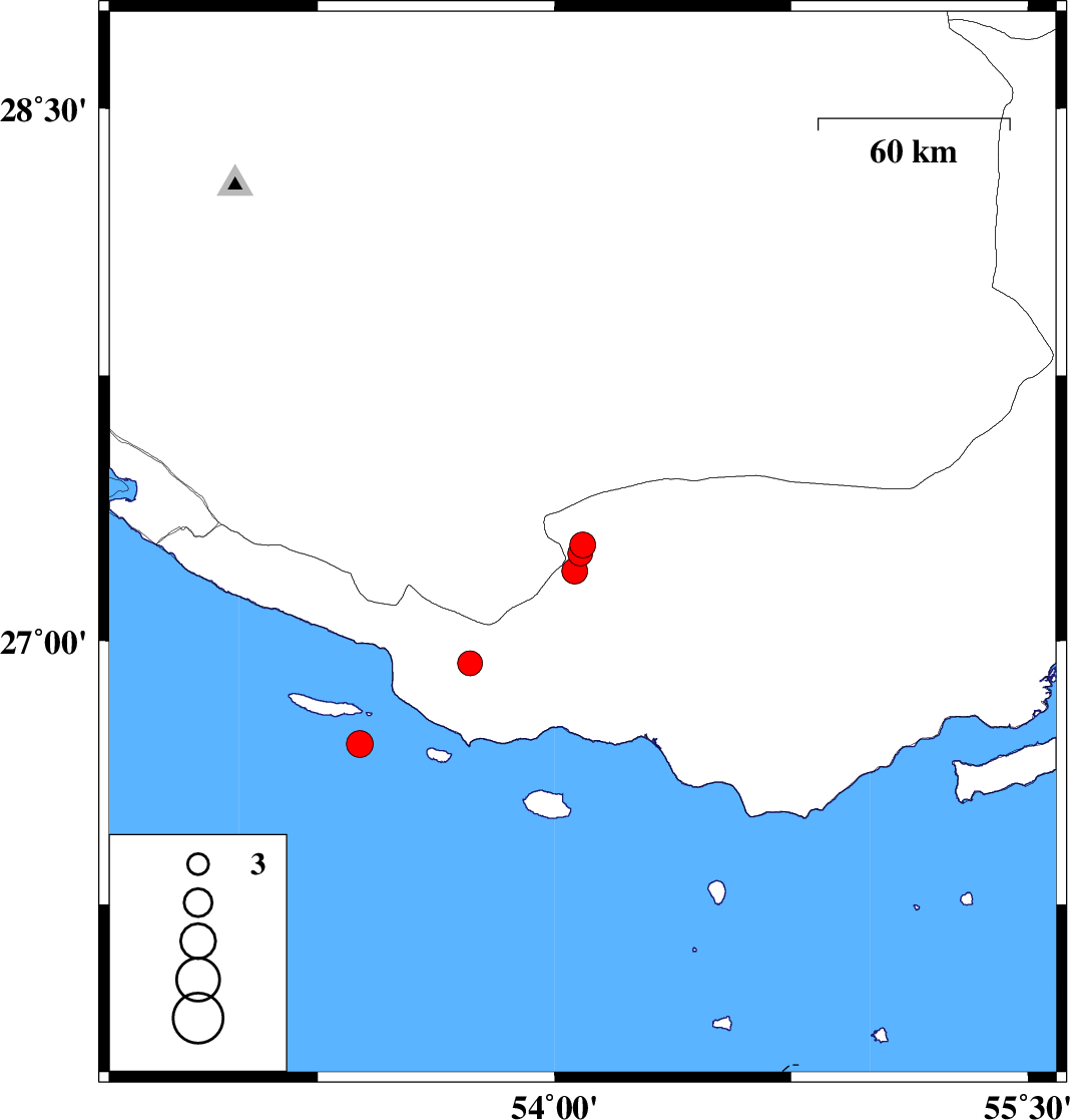 Persian Gulf, 73 km South-East of Lamerd | |