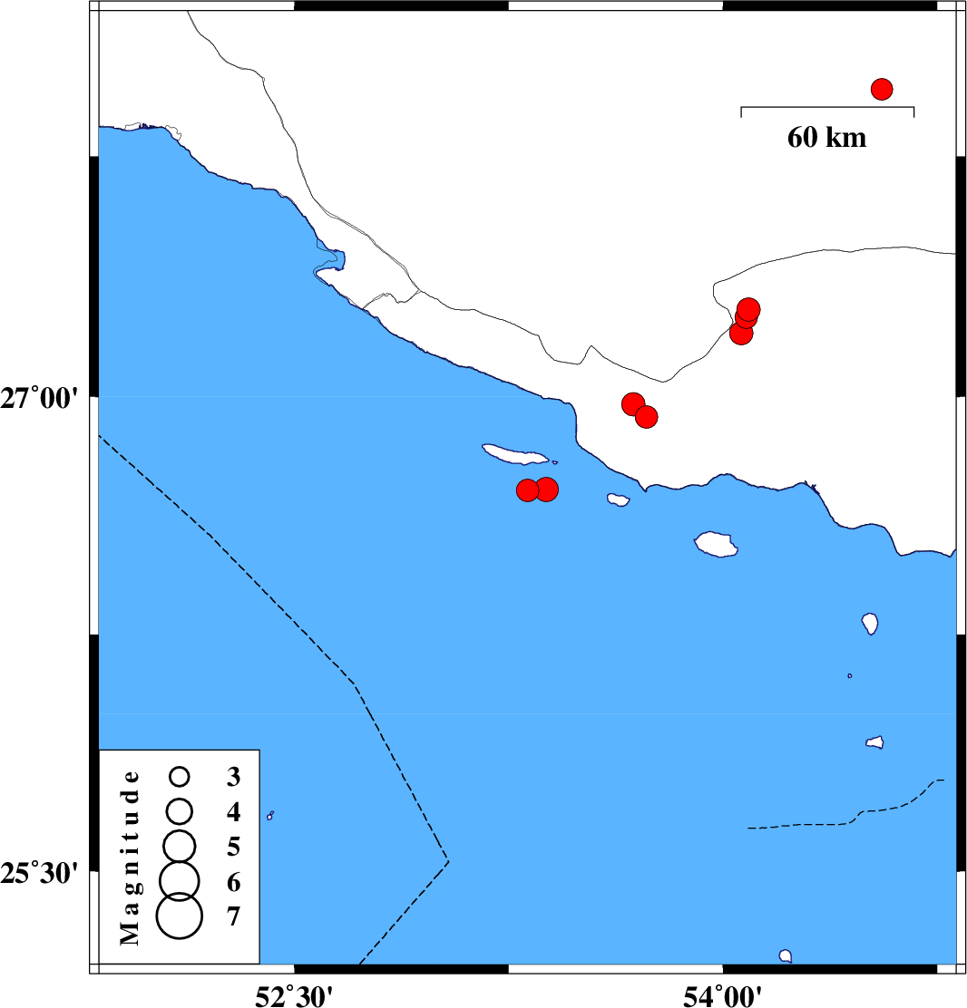 Persian Gulf, 71 km South-East of Lamerd | |