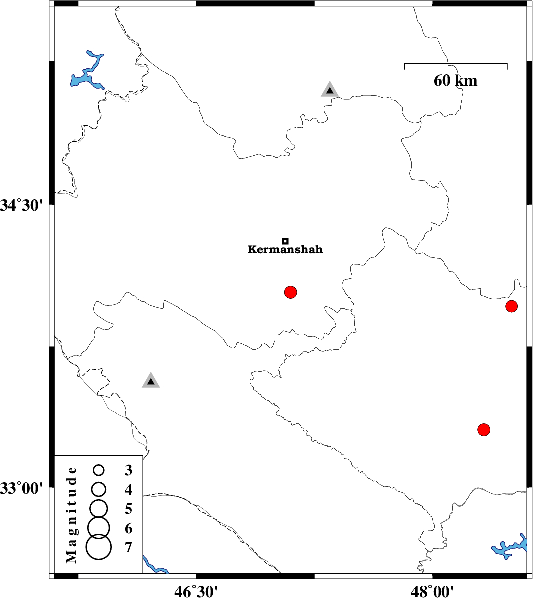 | 2024/03/25 | 14:35:50.3 | 18:05:50.3 | 34.037 | 47.098 | 12 | ML3.5 | Kermanshah Province, 30 km South of Kermanshah | ||