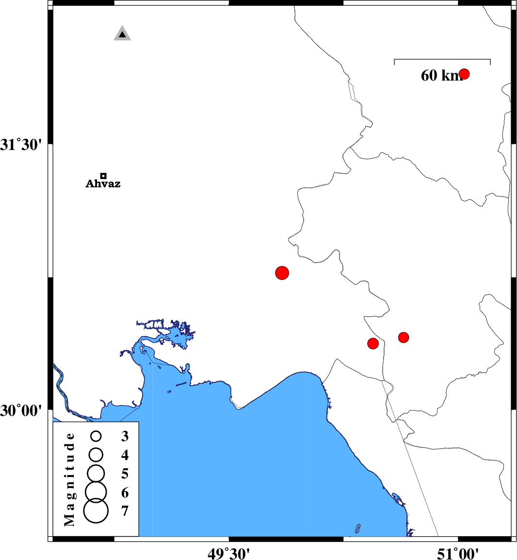 | 2024/03/07 | 11:16:58.8 | 14:46:58.8 | 30.375 | 50.443 | 10 | ML3.3 | Khoozestan Province, 33 km -West of Dogonbadan |