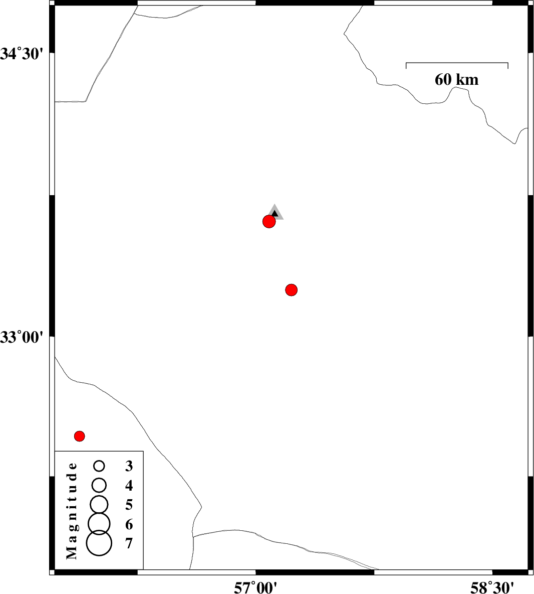 | 2024/04/01 | 13:44:03.6 | 17:14:03.6 | 33.247 | 57.225 | 7 | ML3.4 | Yazd Province, 48 km South-East of Tabas | ||
