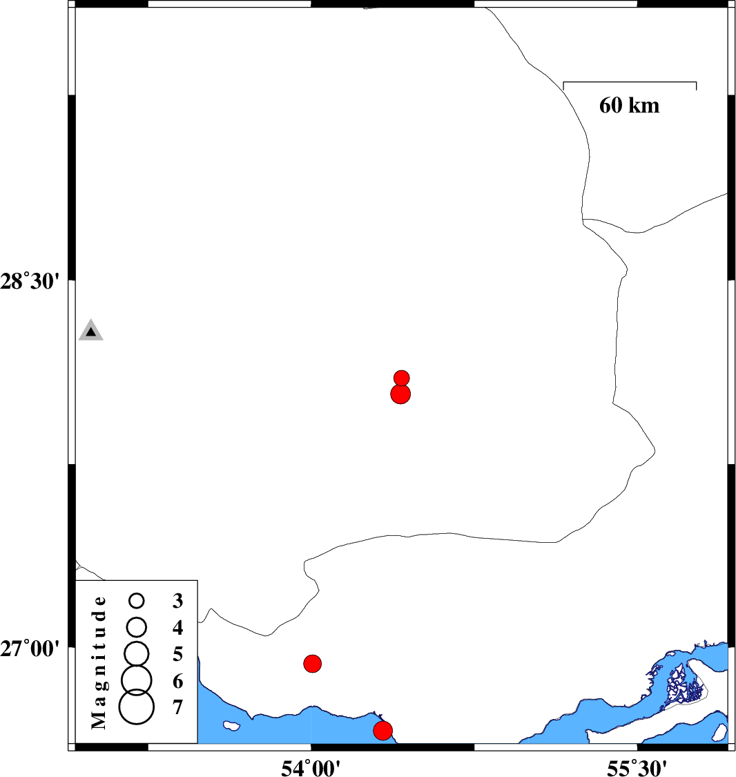 | 2024/04/06 | 04:54:51.5 | 08:24:51.5 | 26.655 | 54.329 | 12 | ML3.9 | Persian Gulf, 60 km South of Bastak | ||