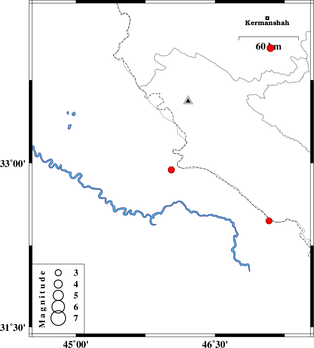 | 2024/04/10 | 17:02:50.5 | 20:32:50.5 | 32.939 | 46.029 | 12 | ML3.3 | Iraq, 24 km South-West of Mehran | ||