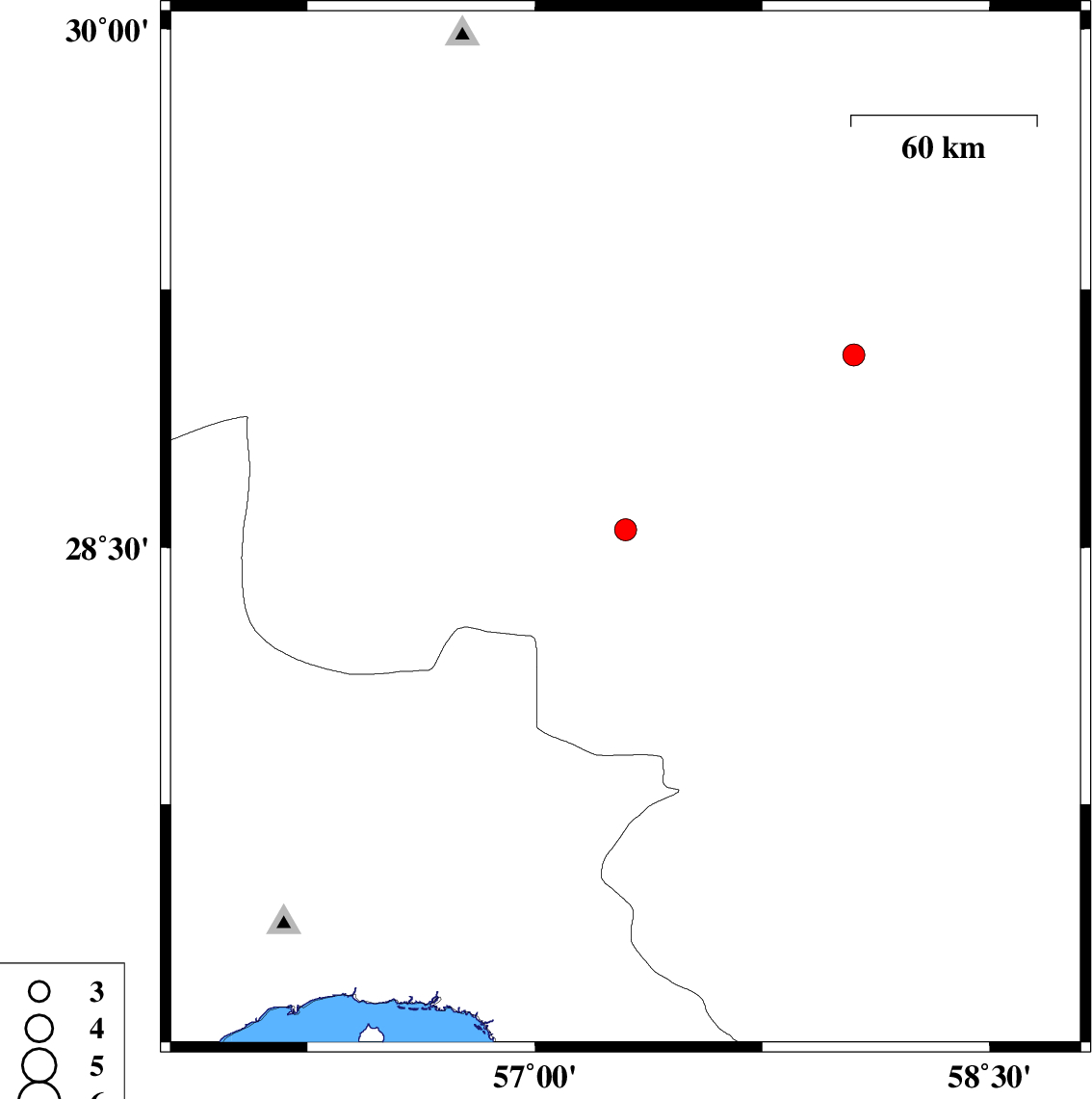 | 2024/03/14 | 06:59:24.5 | 10:29:24.5 | 29.06 | 58.051 | 10 | ML3.2 | Kerman Province, 30 km -West of Bam |