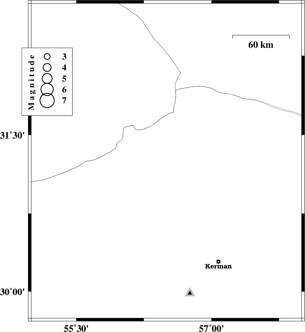 | 2024/04/24 | 06:47:58.1 | 10:17:58.1 | 31.242 | 56.5 | 10 | ML3.8 | Kerman Province, 30 km -West of Ravar | ||