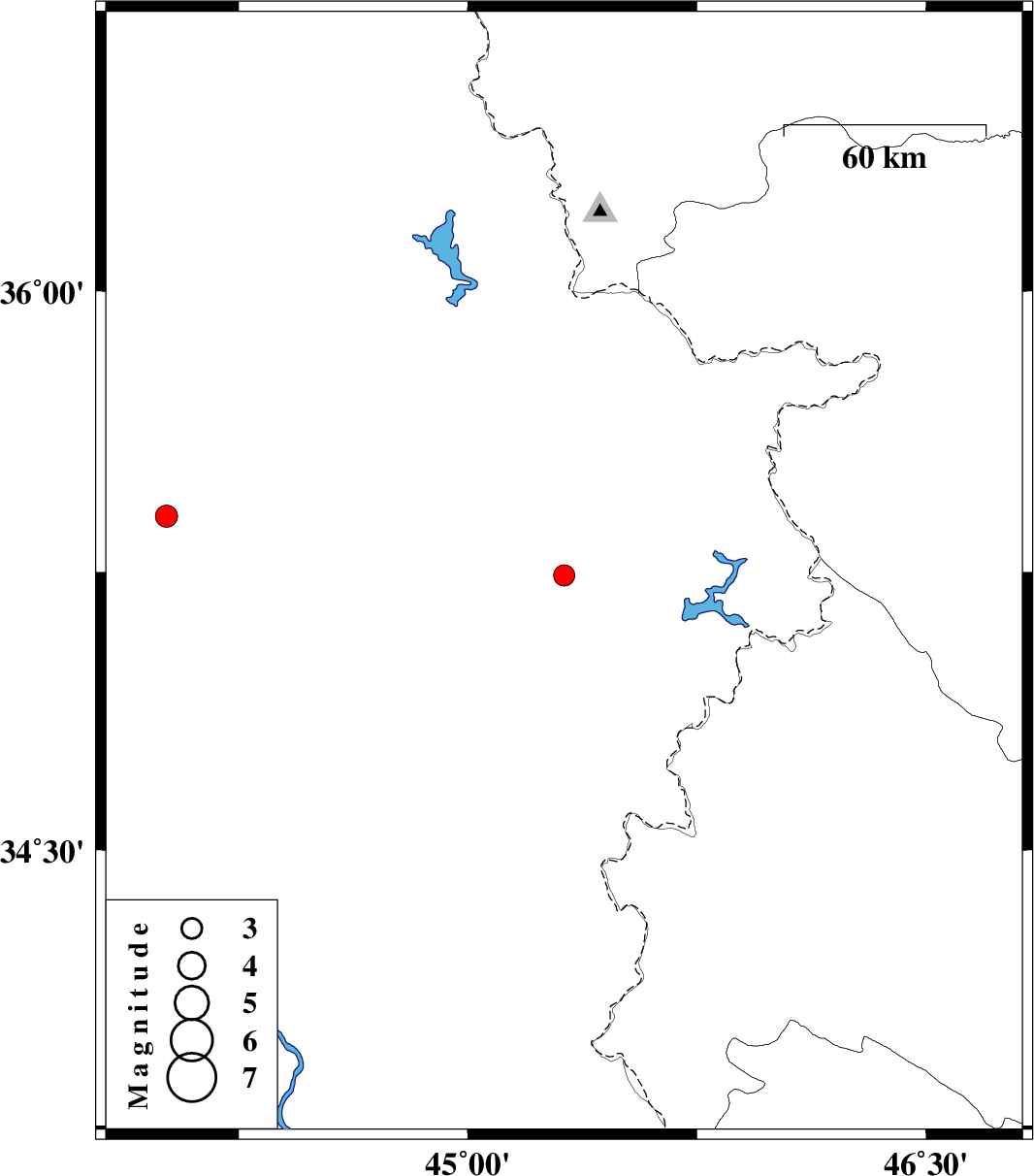 | 2024/04/27 | 11:11:40.8 | 14:41:40.8 | 35.4 | 44.014 | 12 | ML3.3 | Iraq | ||