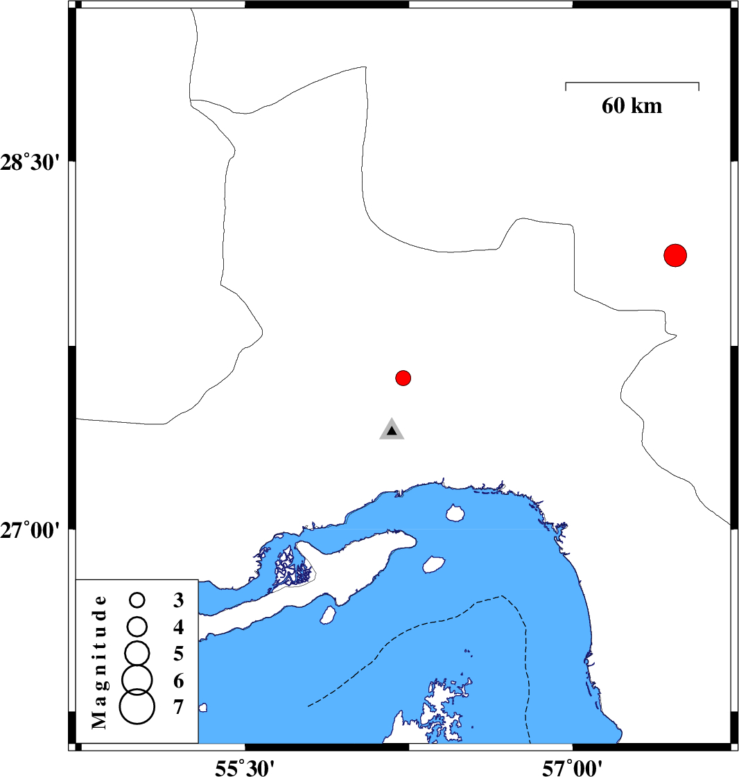 | 2024/05/02 | 04:23:45.8 | 07:53:45.8 | 28.118 | 57.47 | 10 | ML4.6 | Kerman Province, 29 km North-West of Kahnuj |