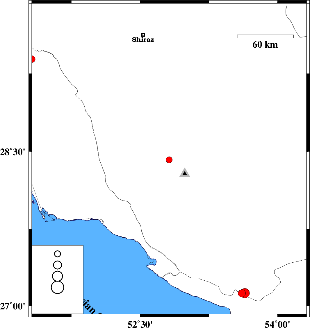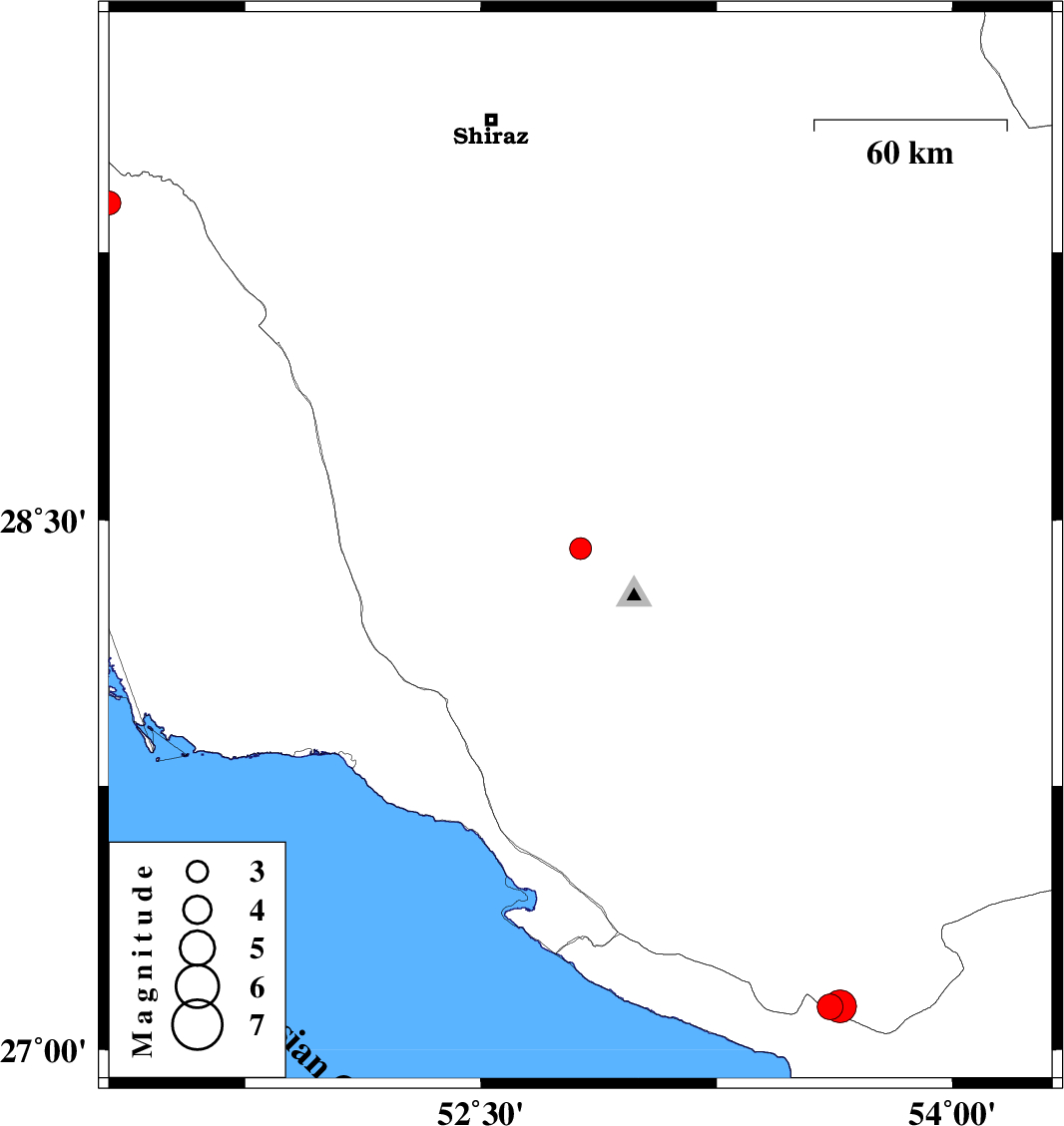 | 2024/05/11 | 11:30:17.6 | 15:00:17.6 | 27.122 | 53.611 | 18 | ML3.6 | Fars Province, 50 km South-East of Lamerd | ||