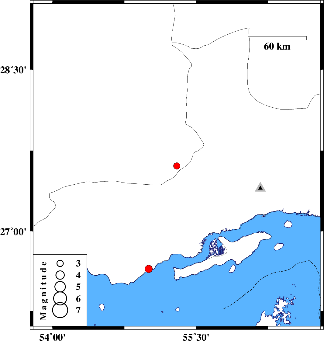 | 2024/05/18 | 23:15:56.5 | 02:45:56.5 | 27.607 | 55.298 | 17 | ML3.1 | Fars Province, 95 km -East of Lar | ||
