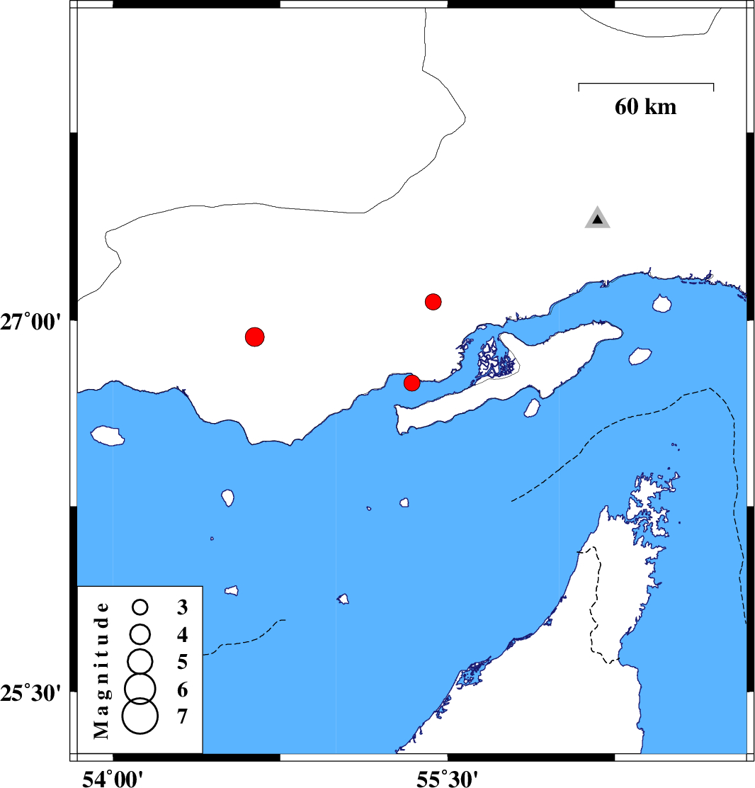 | 2024/05/19 | 14:39:21.2 | 18:09:21.2 | 27.074 | 55.435 | 12 | ML3.2 | Hormozgan Province, 83 km North-West of Qeshm |