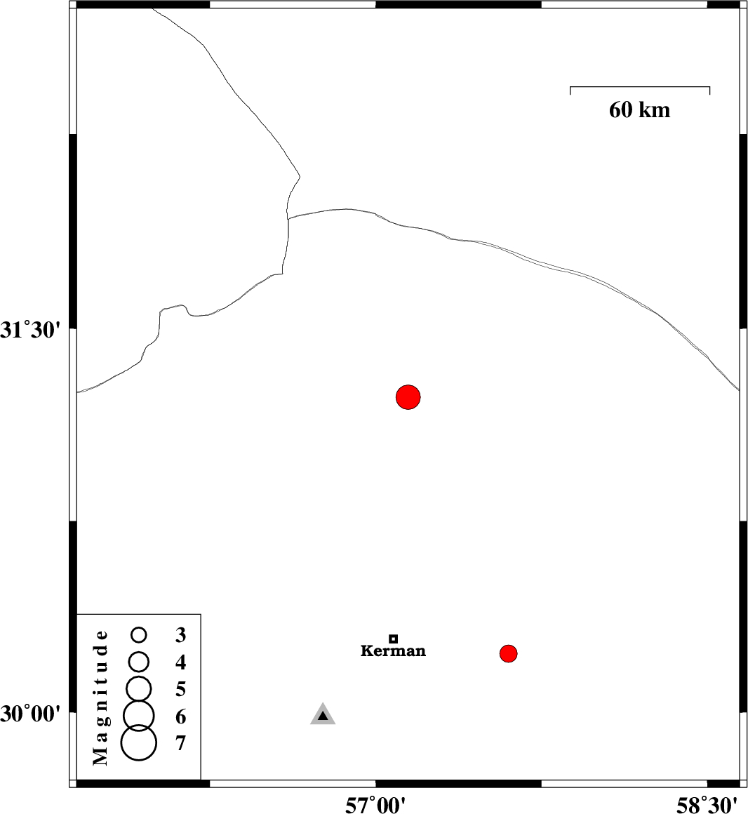 | 2024/05/30 | 01:07:45.4 | 04:37:45.4 | 31.233 | 57.146 | 16 | ML4.9 | Kerman Province, 32 km -East of Ravar | ||