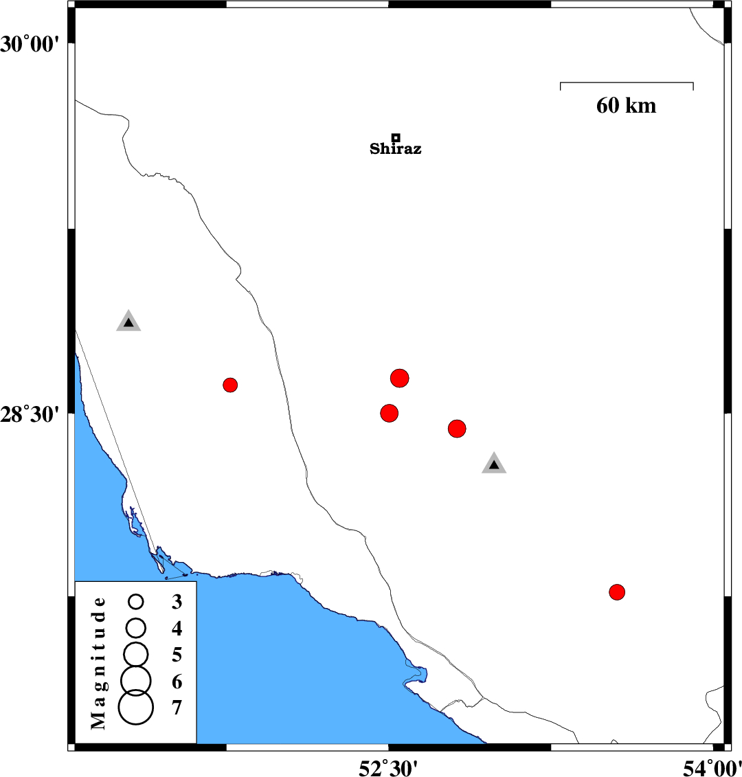 | 2024/05/28 | 12:22:30.2 | 15:52:30.2 | 28.437 | 52.815 | 9 | ML3.6 | Fars Province, 21 km -West of Qir va Karzin |