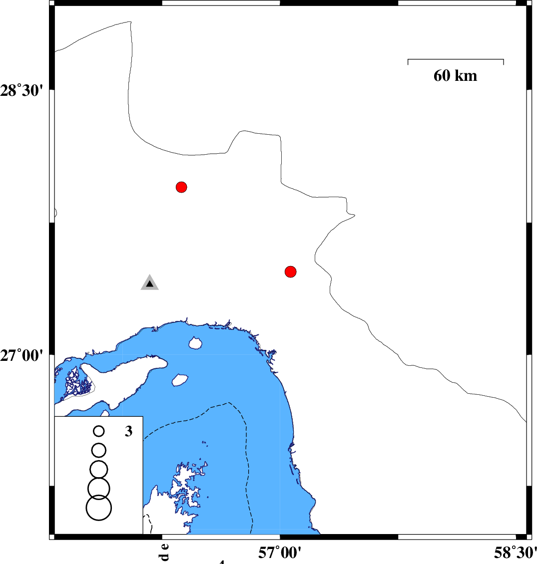 | 2024/06/02 | 02:11:14.7 | 05:41:14.7 | 27.951 | 56.373 | 12 | ML3.1 | Hormozgan Province, 61 km South-East of Hajiabad |