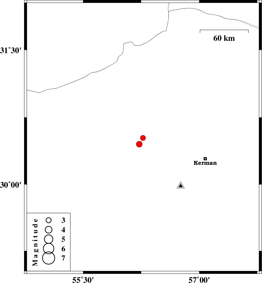 | 2024/06/15 | 06:26:54.9 | 09:56:54.9 | 30.451 | 56.226 | 16 | ML3.5 | Kerman Province, 23 km -East of Rafsanjan |