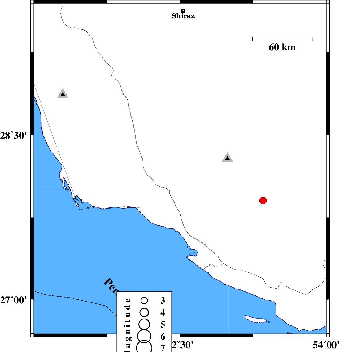| 2024/06/27 | 17:56:18.8 | 21:26:18.8 | 27.562 | 53.822 | 10 | ML3.4 | Fars Province, 53 km South-West of Lar |