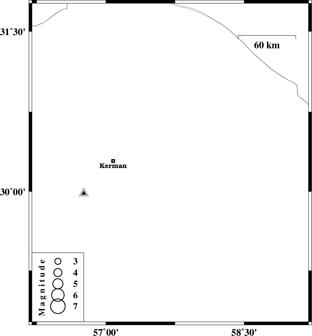 | 2020/09/02 | 04:27:17.8 | 08:57:17.8 | 30.262 | 57.698 | 12 | ML3.2 | Kerman Province, 60 km -East of Kerman |