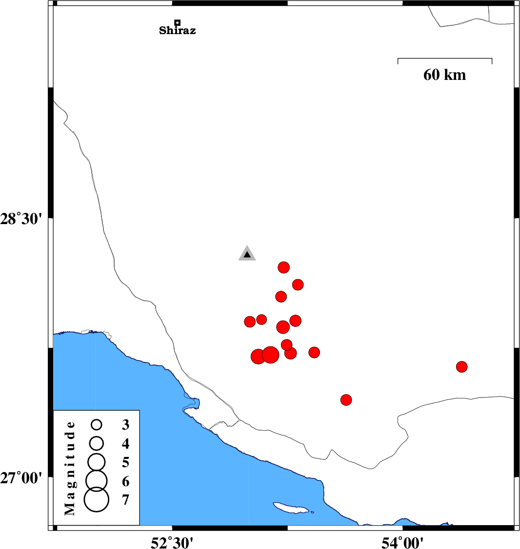 2020/08/25 14:14:53.4 18:44:53.4 27.91453.0812 ML3 Fars Province, 45 km North-East of Mehr